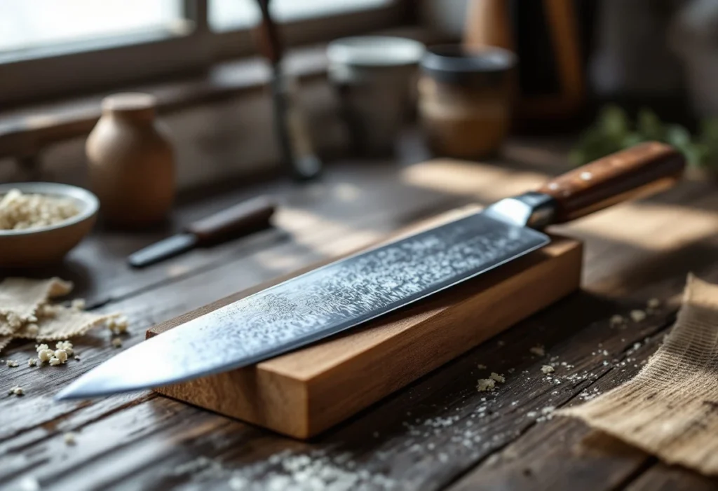 Le fusil à aiguiser traditionnel, longtemps apprécié pour les couteaux occidentaux, doit être utilisé avec prudence pour les lames asiatiques. Si certains modèles en céramique ou diamant respectent davantage la dureté élevée des aciers japonais, il demeure préférable de réserver cette méthode à l’entretien quotidien d’une lame à la géométrie robuste.